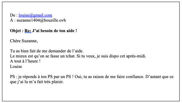 Pour m’adresser ta réponse, c’est ultra simple : envoie-moi un mail avec ton choix à suzanne1404@bouzille.ovh
